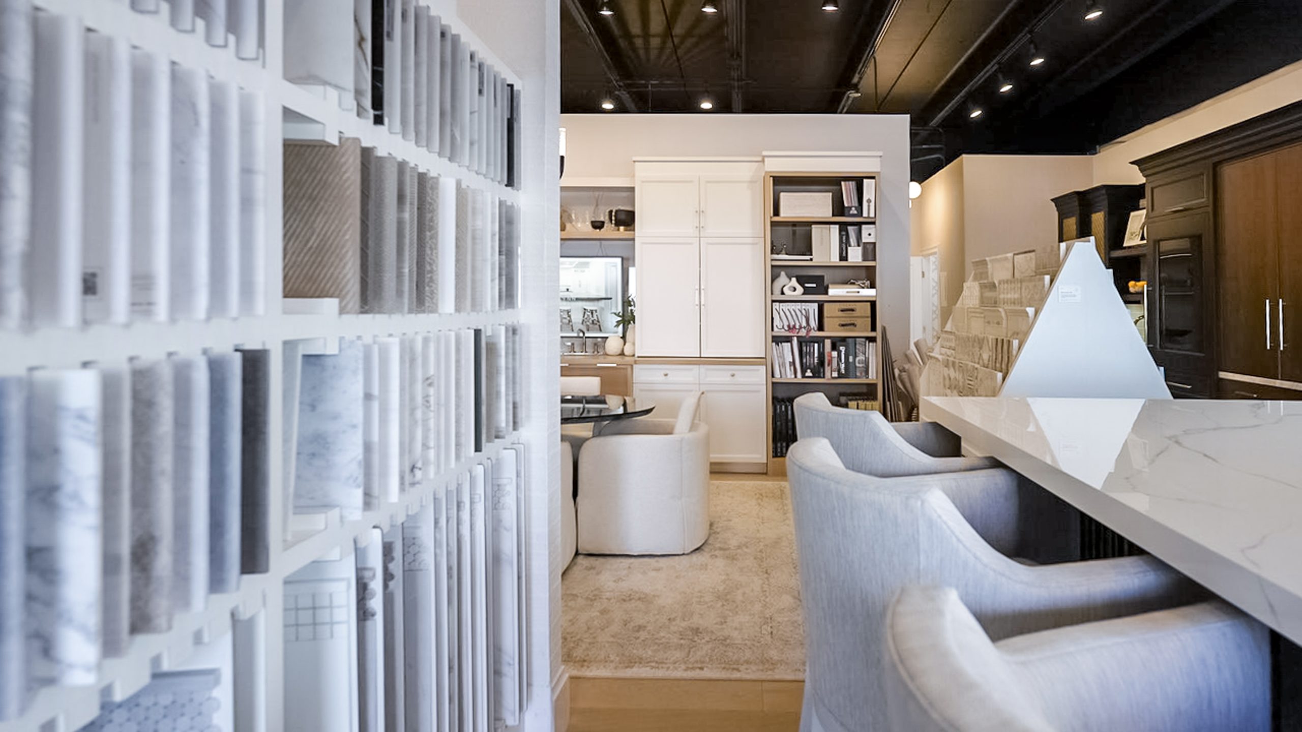 Our gorgeous 2,000 square foot studio was created to give our clients a totally unique experience for their design projects. Our showroom has a high end kitchen, a fabrics, finishes and tile library, a beautiful conference area, and our design offices. We invite our clients to touch the fabrics, sit on the sofas and chairs, and simply get inspired. This hands-on experience makes all the difference in helping our client’s envision what their spaces can become!